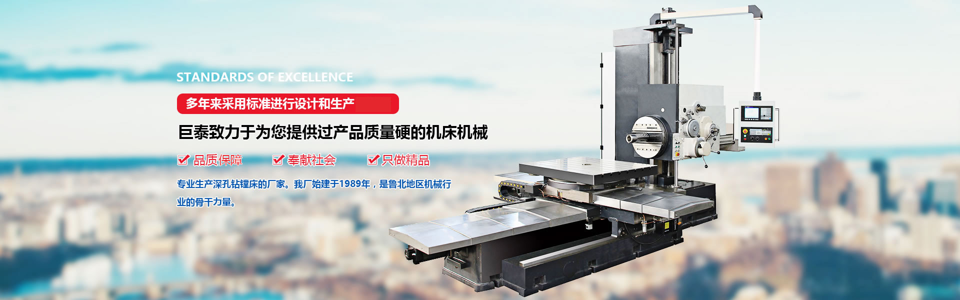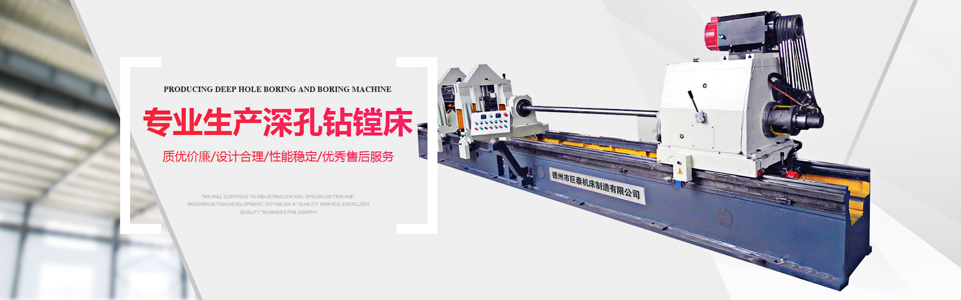 德州市巨泰機(jī)床制造有限公司位于具有“九達(dá)天衢”、“神京之門”之稱的山東省德州市,是專業(yè)生產(chǎn)深孔鉆鏜床的廠家。我廠始建于1989年,擁有固定資產(chǎn)1800萬(wàn)元,員工120人,其中高級(jí)工程師8人,專業(yè)技術(shù)人員26人,是魯北地區(qū)機(jī)械行業(yè)的骨干力量。 本廠擁有大型機(jī)械加工設(shè)備4000mm、6000mm、9000mm龍門刨床、1140×8000mm車床、數(shù)控鏜床、大型數(shù)顯斷面銑、大型滾齒輪、機(jī)械加工中心等各類型磨床、車床、鉆床、銑床,八十余臺(tái)。 主導(dǎo)產(chǎn)品有:普通類——深孔鉆鏜床(T2116、T2120)、深孔鏜床(T2225、T2235、T2250)、深孔珩磨機(jī)(2M2125A、2M2135A)等;數(shù)控類——數(shù)控深孔鉆鏜床(TK2120、TK2125)、數(shù)控深孔鏜床(TK2235、TK2250)。深孔槍鉆(ZK2102、ZK2103)等。深孔加工刀具、輔具有:標(biāo)準(zhǔn)系列——深孔鉆頭、深孔鏜頭 、滾壓頭 、鏜滾組合頭及深孔珩磨頭等 ,并承接非標(biāo)深孔刀具 、特型孔加工刀具的設(shè)計(jì)制造業(yè)務(wù) ,根據(jù)生產(chǎn)需要有單體刀具和復(fù)合刀具,產(chǎn)品規(guī)格從Φ30mm到Φ1000mm......